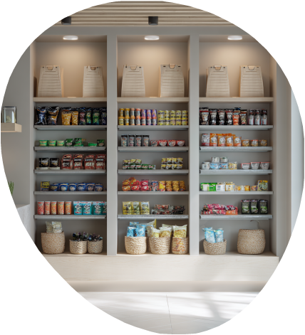 Un lugar dentro del conjunto pensado para resolver tus compras rápidas sin salir de casa. Ideal para adquirir productos básicos, snacks y artículos de primera necesidad, con estanterías organizadas y un espacio práctico para tu comodidad diaria.