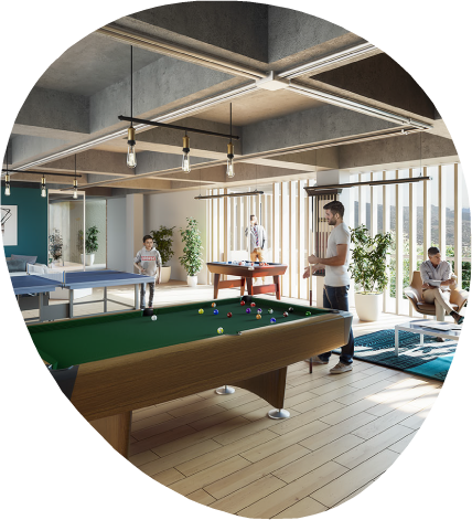 Un ambiente diseñado para la concentración y el aprendizaje, equipado con tecnología y mobiliario cómodo. Aquí podrás realizar trabajos, imprimir documentos o estudiar en un entorno tranquilo y colaborativo, dentro de tu propio conjunto.