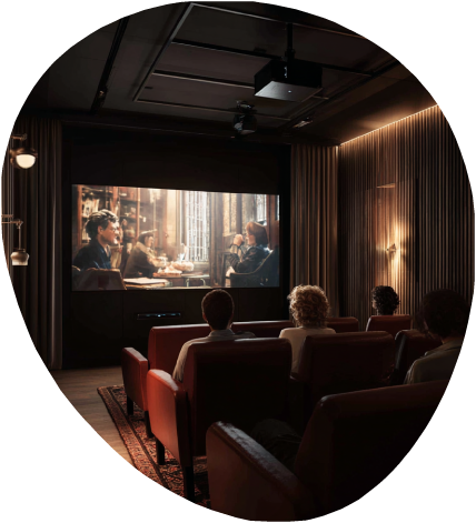 Un espacio ideal para disfrutar películas, presentaciones o eventos comunitarios sin salir de casa. Con ambiente oscuro, sillas cómodas y proyector de alta calidad, la sala está pensada para vivir experiencias audiovisuales compartidas.